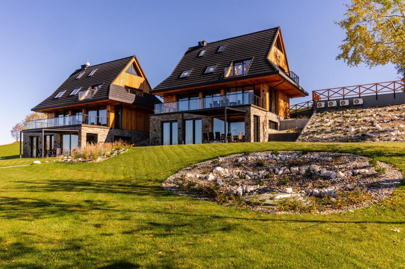 Willa typu Deluxe. Featuring a private entrance, this air-conditioned villa is comprised of 3 living rooms, 7 separate bedrooms and 5 bathrooms with a walk-in shower and a bath. In the fully equipped kitchen, guests will find a stovetop, a refrigerator, a dishwasher and kitchenware. The spacious villa offers a tea and coffee maker, a dining area, a wardrobe as well as a terrace with garden views. The unit offers 10 beds. Willa - 20 osobowy. Powierzchnia pokoju ok.: 213 mkw.